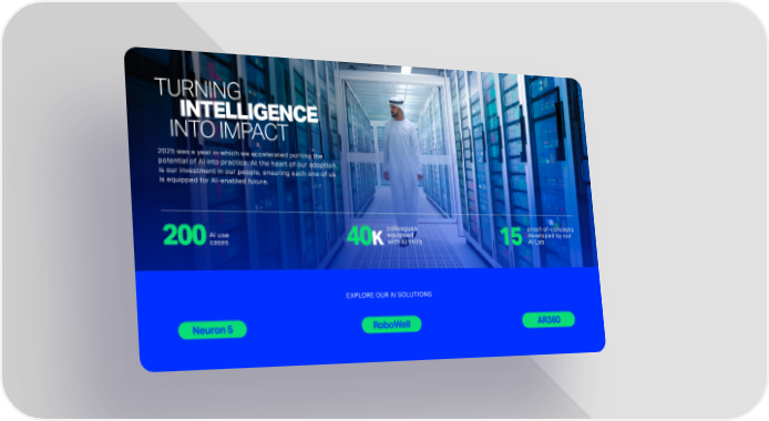 TURNING INTELLIGENCE INTO IMPACT 2025 was a year in which we accelerated putting the potential of AI into practice. At the heart of our adoption is our investment in our people, ensuring each one of us is equipped for AI-enabled future. Neuron 5 RoboWell AR360 200 AI use cases 40 K colleagues equipped with AI skills 15 proof-of-concepts developed by our AI Lab EXPLORE OUR AI SOLUTIONS