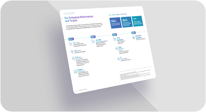 As a responsible energy provider, we are committed to accelerating the decarbonization of our oil and gas operations, while growing our portfolio of low-carbon ammonia, as well as investing in green hydrogen and renewables through our shareholding in Masdar. upstream GHG intensity amongst lowest in the industry 7 kgCO 2 e/boe 1 lower than Oil and Gas Methane Partnership 2.0 ambition of 0.2% <0.15% upstream methane intensity 4 CH 4 in scope 1 and 2 emissions Net Zero Ambition Our Lower-Carbon Ambitions global renewable energy capacity by 2030 through Masdar green hydrogen production by 2030 through Masdar low-carbon ammonia production by 2025 100GW 1 MILLION TONNES/YR 1 MILLION TONNES/YR 1. Upstream GHG intensity excludes onshore gas processing activities. 2. Upstream GHG emissions reporting in line with the International Association of Oil and Gas Producers (IOGP), which includes oil and gas production and processing. 3. Data has undergone external limited assurance in accordance with ISAE 3000. 4. Methane emissions have undergone external limited assurance in accordance with ISAE 3000. Methane intensity methodology is aligned with the Oil and Gas Methane Partnership (OGMP) reporting framework. Our downstream joint ventures Borouge and ADNOC Distribution report their GHG emissions through their annual sustainability reports. 01 Our Energy Transition Framework upstream GHG emissions 24 mtCO 2 e 2,3 of scope 1 and 2 emissions through imported power from nuclear and solar sources and energy efficiency 5.4 million tCO 2 e reduction 3 in scope 1 and 2 emissions relative to 2019 baseline 25% GHG intensity reduction of carbon capture capacity 5 million tonnes/yr over the next five years towards decarbonization and low carbon solutions $15bn initial investment $ 2022 2025 2030 2045 Our Emissions Performance and Targets from our operated oil and gas assets Zero Methane CH 4 13 12 Advancing Towards Net Zero
