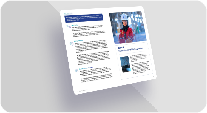 Electrifying our Offshore Operations Currently under construction, we are building a $3.8 billion, first-of-its-kind in the region, sub-sea transmission network to connect our offshore operations to onshore grid power from nuclear and solar energy. Upon completion, the project will potentially reduce the carbon footprint of our offshore operations by up to 50%, replacing existing offshore gas turbine generators with power from the grid. Our collaborative approach will also drive operational efficiencies and improve the reliability of the energy supply system, while offering the potential for power supply cost optimization. CASE STUDY Electrification Since January 2022, we have sourced 100% of our grid power from nuclear and solar, making ADNOC one of the first major oil and gas enterprises to decarbonize its electricity supply at scale. We are electrifying our liquefied natural gas (LNG) production. Our low carbon intensity LNG growth project will play a key role in the energy transition and will provide some of the worlds lowest-carbon LNG once completed. Electrification, energy efficiency, methane emissions abatement, and carbon capture and storage are the key decarbonization levers toward achieving 25 percent intensity reduction by 2030. Energy Efficiency We are focused on energy efficiency through the implementation of Group-wide ISO 50001 certification in energy management. In 2020 we achieved a 15% improvement in our energy efficiency compared to a 2014 baseline, resulting in more than 100 million gigajoules (GJ) of cumulative energy savings across our operating companies. In 2022 alone, we achieved more than 19 million GJ of energy savings as we progress our efforts towards a 5% energy improvement target by 2025. Our $600 million waste heat recovery project is revolutionizing power and water generation at our general utilities plant providing electricity and water to the entire Al Ruwais Industrial City. By using heat generated at the site to drive two steam-powered turbines, we can produce an additional 62,400 cubic meters of distillate water per day and 230 megawatts of power. Upon completion, the project will increase the thermal efficiency of the site by nearly 30% and reduce dependence on the national grid. Carbon Capture and Storage We completed the Al Reyadah CCS facility in 2016, the regions first commercial-scale carbon capture facility, with a CO 2 capture capacity of up to 800,000 tonnes per year. The facility processes CO 2 captured from Emirates Steel Industries, which is then safely injected into our onshore oilfields. We are also piloting carbon removal and storage technology to permanently mineralize CO 2 within rock formations and have commenced work on the worlds first fully sequestered CO 2 injection well in a carbonate saline aquifer. 04 Our Journey to Net Zero Das Island, UAE 31 30 Advancing Towards Net Zero