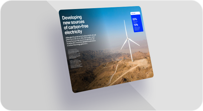 Developing new sources of carbon-free electricity Although AI is projected to be about 0.24% of total global electricity use by 2026, the broader cross- sectoral load growth necessitates the build-out of carbon-free electricity and additional sources of carbon-free energy generation. The technology and energy industries must work to meet the evolving demands on the world’s grids and this build-out of carbon-free energy sources through a combination of direct investment and green procurement (e.g., power purchase agreements). In addition, new sources of energy will need to be connected to new sources of demand through increased transmission and distribution capacity. The integration of software that increases grid transparency and accuracy can help. SURVEY INSIGHT of leaders in energy companies and of leaders in technology companies surveyed are willing to pay more for carbon-free energy 83% 75% 82 Powering Possible 81