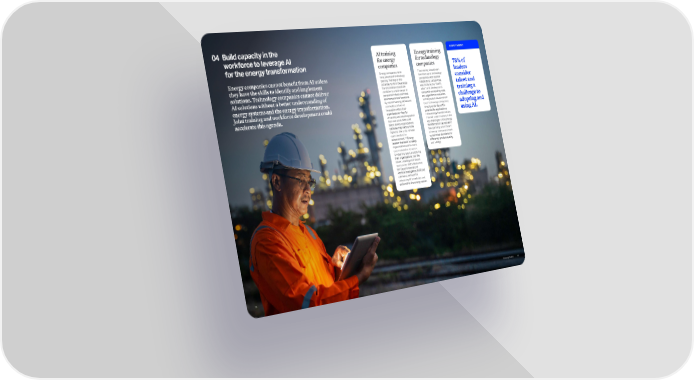 Energy companies cannot benefit from AI unless they have the skills to identify and implement solutions. Technology companies cannot deliver AI solutions without a better understanding of energy systems and the energy transformation. Joint training and workforce development could accelerate this agenda. 04 Build capacity in the workforce to leverage AI for the energy transformation AI training for energy companies Energy companies have long prioritized technology training. Training on the potential for AI in the energy transformation should be available to a wide range of personnel in both technical and nontechnical functions. By mainstreaming AI, leaders can build a culture of innovation within their organizations—key for attracting and retaining talent. Approximately 80% of AI talent leaves organizations because they want a more dynamic role or do not see opportunities for advancement.160 Energy leaders that build AI-ready organizations will be more successful when it comes to retaining talent and driving their organizations into the future. Leading institutions such as the UAE’s Mohamed bin Zayed University of Artificial Intelligence (MBZUAI) can serve as hubs for advancing AI knowledge and skills within the energy sector. Energy training for technology companies This training should start from the top at technology companies, with leaders establishing carbon-free electricity as the “fourth pillar” of AI development, along with computing, data, and algorithmic innovation. At the product development level, technology companies need to understand AI’s potential for applications in the energy transformation. This will require training in the key challenges of the energy transformation, as well as in the operating environment of energy companies (such as technical standards for efficiency, product quality, and safety). SURVEY INSIGHT 78% of leaders consider talent and training a challenge to adopting and using AI. 96 Powering Possible 95
