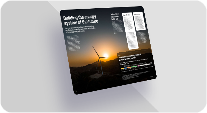Global under construction and planned solar and wind projects as of February 2023, in GW Under construction1 PPA signed/FID2 Bidding process3 Authroized4 Submitted5 Announced6 89% of projects under planning, mostly announced and authorized (89%) 1,553 166 (11%) 144 (9%) 195 (13%) 325 (21%) 121 (8%) 601 (39%) 1. All consents received, preliminary work has commenced, and placing main contracts has occurred and/or project under synchronization. 2. The project company has signed an offtake agreement, the project company has made the final investment decision. 3. Authorized project with an order has been placed for main equipment and/or major site work. 4. Project has received public/statutory consents by national authorities. 5. Project has been submitted to national authorities. 6. Project announced by company or planned in a national development plan. Source: Enerdata February 2023. Building the energy system of the future The energy system of the future will be built from many technologies available today—such as wind, solar, and batteries—and some that require further development—such as advanced geothermal, small, modular nuclear reactors, advanced nuclear, and green hydrogen. To be successful, we must continue pushing these technologies down the cost curve and accelerating the speed of their deployment. AI is not a silver bullet in this, but it has a role to play. The energy system of the future will be built from development and deployment of new technologies. AI has a supporting role to play. Site selection When identifying a site for new renewable energy projects, developers optimize for a range of factors, including weather patterns, topography, grid connectivity, and transmission congestion.57 These factors are vital to consider because they influence deployment lead time and cost effectiveness, both factors in the return on investment. AI-based optimization tools could prove helpful.58 They can assess weather patterns, analyze benchmark data from other projects in similar environments, and streamline interconnection studies to understand how rapidly and efficiently a project could be linked to the grid. For example, the World Bank’s REZoning tool is an open-source platform that uses advanced analytics to identify optimal locations for solar and wind installations.59 Permitting The build-out of renewables has slowed because of the permitting process. All told, the permitting and approval of renewable energy projects can take seven to 12 years, creating a major bottleneck in the planning stage. Today, nearly 90% of renewable energy projects worldwide are somewhere in the planning stage—construction is still in the future (see Figure 10). Figure 10 Accelerated permitting is critical to near-term deployment According to the IRENA, the rate of deployment for renewables must accelerate to meet the target of tripling renewable energy capacity by 2030, as required by the COP28 UAE Consensus. Specifically, annual rate of wind deployment needs to increase by 16.9% and solar-PV deployment by 18.4%.56 AI can contribute to this effort, including by accelerating site selection and permitting. Role of AI in renewables build-out AI and GenAI can expedite various parts of the permitting process. For example, AI can analyze satellite imagery and geospatial data for environmental impact assessments to support in expediting the process by up to 40%, from five years to three years,60 while GenAI’s language processing and text classification capabilities can help streamline documentation processes.61 36 Powering Possible 35