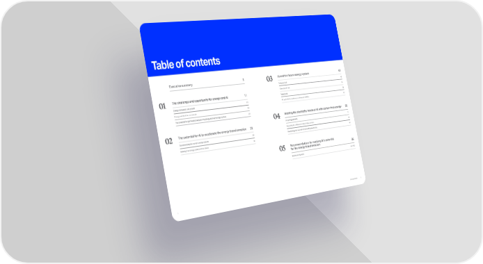AI’s energy demand 71 Improving the efficiency of AI and data centers 79 Developing new sources of carbon-free electricity 81 Meeting the electricity needs of AI with carbon-free energy 69 04 Seven priority areas 87 – 102 05 Recommendations for realizing AI's potential for the energy transformation 85 Table of contents Executive summary 5 Energy, innovation, and growth 13 Energy and AI at the crossroads 19 The potential for partnership between the energy and technology sectors 23 The challenge and opportunity for energy and AI 11 01 02 Decarbonizing the current energy system 29 Building the energy system of the future 35 The potential for AI to accelerate the energy transformation 25 03 Systems level 49 Operational level 55 Global level 59 AI's potential to evolve more advanced abilities 67 AI and the future energy system 43 2 Powering Possible 1
