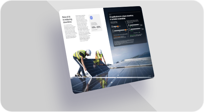 Role of AI in reducing downtime Once renewable projects are operational, it is crucial to maximize both emissions reduction and business value. Investments in renewables, grids, and battery storage need to double through 2030 to meet the COP28 target of tripling capacity.62 One attractive aspect of the investment proposition for renewables is that, after the initial capital outlay, projects have relatively low operating costs.63 AI applications to reduce downtime in variable renewables AI helps maintain low operating costs for renewable projects by minimizing the amount of downtime due to planned or unplanned maintenance. AI-driven predictive maintenance can reduce downtime by 10% to 20% at the asset level, significantly lowering maintenance costs.64 Reduced downtime also allows projects to supply more clean power to the grid, potentially replacing energy from emission-intensive sources. For example, a 10% to 20% reduction in downtime across the asset base of a 1 GW wind farm could translate to emissions savings of approximately 5T CO2 per year (see Figure 11). Presight, a leading big data analytics company powered by GenAI, has developed an asset management tool for its renewable energy projects around the globe. Figure 11 ~10-20% AI-enabled reduction in unplanned downtime for solar and wind ~95% AI-enabled reduction of emissions attributable to downtime optimization AI-driven energy loss prevention potential Fossil fuels VRE 0.03 0.07 0.02 0.01 0.06 0.01 Estimated unplanned VRE downtime (TWh) Emissions corresponding to additional VRE generation vs. equivalent fossil fuel generation (MT CO2) 0.11 0.03 4.91 Solar Wind 1.84 -94% -99% Solar Wind Note: Methodology used 1GW as representative of an average solar/wind farm capacity, potential impact is estimated based on the real-world deployment of 10-20% downtime reduction with the upper end of the range being used in the analysis on the page. Source: NREL, Life Cycle Greenhouse Gas Emissions from Electricity Generation: Update 2021; IPCC - Emission Factor Database (2023) – with minor processing by Our World in Data; Expert interviews; ADNOC analysis AI-driven predictive maintenance capability can reduce downtime by at the asset level 64 10% – 20% 38 Powering Possible 37