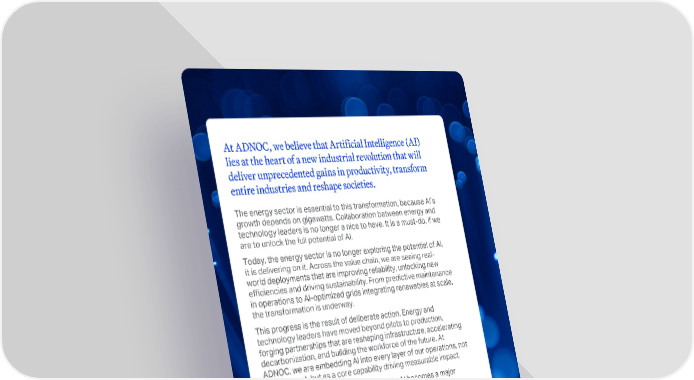 At ADNOC, we believe that Artificial Intelligence (AI) lies at the heart of a new industrial revolution that will deliver unprecedented gains in productivity, transform entire industries and reshape societies. The energy sector is essential to this transformation, because AIs growth depends on gigawatts. Collaboration between energy and technology leaders is no longer a nice to have. It is a must-do, if we are to unlock the full potential of AI. Today, the energy sector is no longer exploring the potential of AI, it is delivering on it. Across the value chain, we are seeing real- world deployments that are improving reliability, unlocking new efficiencies and driving sustainability. From predictive maintenance in operations to AI-optimized grids integrating renewables at scale, the transformation is underway. This progress is the result of deliberate action. Energy and technology leaders have moved beyond pilots to production, forging partnerships that are reshaping infrastructure, accelerating decarbonization, and building the workforce of the future. At ADNOC, we are embedding AI into every layer of our operations, not as a concept, but as a core capability driving measurable impact. Yet the pace of change must increase. As AI becomes a major energy consumer, and as energy systems become more technology dependent, our strategies must evolve together. That means investing in talent, scaling proven solutions, and aligning policy with innovation. This report reflects a sector in motion. It captures the lessons learned, the value created, and the urgency to go further. The next step is accelerated execution, together. Dr. Sultan Al Jaber Managing Director and Group CEO, ADNOC and Chairman, Masdar