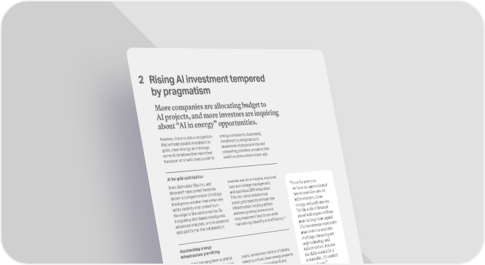 AI for grid optimization Itron, Schneider Electric, and Microsoft have joined forces to deliver a comprehensive Grid Edge Intelligence solution that enhances utility visibility and control from the edge to the control center. By integrating distributed intelligence, advanced analytics, and AI-powered data platforms, the collaboration However, there is also a recognition that without parallel investment in grids, clean energy, and storage, some AI initiatives (like electrified transport or smart cities) could hit energy constraints. Essentially, investment is rising but so is awareness of physical limits and competing priorities, a nuance that wasnt as pronounced a year ago. Accelerating energy infrastructure permitting Permitting has long been a critical bottleneck for the rollout of energy infrastructure worldwide. The time intensive, complex, and cost intensive permitting and licensing processes can introduce unpredictability and risk to the development and deployment of energy projects. The Microsoft Generative AI for Energy Permitting Solution Accelerator empowers environmental planners and regulatory engineers to navigate these challenges with advanced speed and precision. For example, the Idaho National Laboratory (INL) recently announced a collaboration to use Microsofts Azure cloud and AI technologies to streamline the nuclear permitting and licensing application process. 14 Traditionally, permit applications span thousands of pages, may take years to finalize, and result in substantial 2 Rising AI investment tempered by pragmatism More companies are allocating budget to AI projects, and more investors are inquiring about AI in energy opportunities. enables real-time insights, improved load and voltage management, and seamless DER integration. This non-wires solution can boost grid capacity without new infrastructure, helping utilities address growing demand and long equipment lead times while maintaining reliability and efficiency. 13 costs, sometimes millions of dollars, delaying critical clean energy projects. By harnessing generative AI and intelligent agents, the Accelerator automates data compilation, formatting, and review, facilitating comprehensive, consistent, and compliant applications. It can enable instant detection of errors and omissions, dramatically reducing review times and boosting confidence in regulatory alignment. Applicable across a range of energy sectors including nuclear, renewables and mining, the Accelerator supports diverse permitting needs with scalable AI-powered capabilities. This innovation not only saves thousands of hours but also accelerates the launch of vital infrastructure, unlocking clean energy deployment at scale. Over the past year, weve seen unprecedented investment flow into AI infrastructure, clean energy, and grid capacity. Yet the scale of demand ahead will require trillions more in long-term capital. The investment community must evolve to meet this challenge, financing not only technology and infrastructure, but also the skills needed for a sustainable, AI-enabled energy future. Douglas Kimmelman Executive Chairman, ECP 13 Collaboration to Extend Grid Edge Intelligence to the Utility Control Center, March 24, 2025, https://www.globenewswire.com/news-release/2025/03/24/3047874/0/en/Itron-and-Schneider-Electric-Collaborate-to- Tackle-Grid-Complexity-Enable-Visibility-and-Control-at-the-Grid-Edge-Integrating-Microsoft-Solutions.html 14 Idaho National Laboratory collaborates with Microsoft to streamline nuclear licensing, July 16, 2025, https://inl.gov/news-release/idaho-national-laboratory-collaborates-with-microsoft-to-streamline-nuclear-licensing/ 22