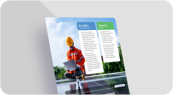 Priority of Artificial Intelligence One of Many Priorities Not a Priority Dont Know / Not Relevant The Top Priority One of the Top Two Priorities The Top Priority by Audience: Industry and sector peers: 13% Finance and investment leaders: 8% Government and policy experts: 0% In the business world, there's a lot of talk: we're doing everything with AI now, everything is better now, we're better because we use AI, [but many] others aren't yet. Brussels, Government and Policy Expert 2024 33% 9% 49% 8% 2% 2025 31% 14% 47% 7% 2% -5% AI still seen as a priority investment Figure 4 2025 SURVEY INSIGHT Key Shifts from 2024 to 2025 Investment keeps rising, priority cools slightly. 87% of organizations report higher AI and digital infrastructure spend in the past 12 months, but AI as the top organizational priority dipped among senior leaders reflecting a maturing view as deployments move from hype to integration. Energy and digital infrastructure leaders are moving from siloed operations to strategic collaborationdriven by the urgent need to jointly tackle electricity affordability, sustainability, and reliability while unlocking innovation at scale. Watch For in 2026 Integrated AIenergy investment announcements (e.g., the new digital infrastructure announced alongside new clean energy and other forms of grid- enhancing resources). A focus on time-to-market for AI products, which will necessitate unique, forward-leaning use of energy technologies at or near data center locations to balance scale and sustainability. 23 Powering Possible 2025