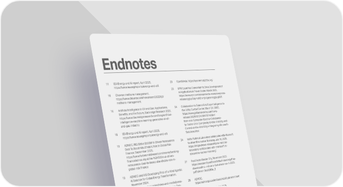 Endnotes 11 IEA Energy and AI report, April 2025, https://www.iea.org/reports/energy-and-ai5 16 Chevron methane management, https://www.chevron.com/newsroom/2022/q3/ methane-management 16 Artificial Intelligence in Oil and Gas: Applications, Benefits, and the Future, Blackridge Research 2025, https://www.blackridgeresearch.com/blog/artificial- intelligence-machine-learning-generative-ai-oil- and-gas-industry 18 IEA Energy and AI report, April 2025, https://www.iea.org/reports/energy-and-ai5 19 ADNOC, RIQ Strike $500M AI-Driven Reinsurance Deal To Boost Abu Dhabis Role In Global Risk Finance, September 2025, https://www.forbesmiddleeast.com/money/banking- finance/adnoc-riq-strike-%24500m-ai-driven- reinsurance-deal-to-boost-abu-dhabis-role-in- global-risk-finance 19 ADNOC and AIQ Developing First-of-a-Kind Agentic AI Solution for Global Energy Transformation, November 2024, https://www.adnoc.ae/en/news-and-media/press- releases/2024/adnoc-and-aiq-developing-first- of-a-kind-agentic-ai-solution-for-global-energy- transformation 22 Twelve and Alaska Airlines to collaborate with Microsoft to advance sustainable aviation fuel derived from recaptured CO2 and renewable energy, Decarbonization Technology, July 2022, https://www.esgtoday.com/alaska-airlines-twelve- microsoft-collaborate-to-use-sustainable-aviation- fuel-produced-from-captured-co2/ 22 Microsoft invests in Fortera to scale low-carbon cement production, Global Construction Review, Feb 2025, https://www.globalconstructionreview.com/ microsoft-invests-in-fortera-to-scale-low-carbon- cement-production/ 22 Microsoft Partners with Stegra to Accelerate Market for Near-Zero Emission Steel, ESG News, Sept 2025, https://stegra.com/news-and-stories/stegra- announces-agreement-with-microsoft 23 OpenMinds, https://openminds203x.org/ 23 EPRI Launches Consortium to Drive Development of AI Applications in Power Sector, March 2025 , https://www.epri.com/about/media-resources/press- release/yglqo5dymdh2nonjvdgqmmpgplyyj826 24 Collaboration to Extend Grid Edge Intelligence to the Utility Control Center, March 24, 2025, https://www.globenewswire.com/news- release/2025/03/24/3047874/0/en/ Itron-and-Schneider-Electric-Collaborate- to-Tackle-Grid-Complexity-Enable-Visibility-and- Control-at-the-Grid-Edge-Integrating-Microsoft- Solutions.html 24 Idaho National Laboratory collaborates with Microsoft to streamline nuclear licensing, July 16, 2025, https://inl.gov/news-release/idaho-national- laboratory-collaborates-with-microsoft-to- streamline-nuclear-licensing/ 27 Fast Facts Masdar City, November 2023 https://masdarcity.ae/docs/default-source/pdf-to- download/mc--net-zero-fact-sheet-nov-1-2023. pdf?sfvrsn=3ca9260a_2 28 ADNOC, https://adnocgas.ae/en/sustainability/environment 32 Microsoft Work Trend Index 2025, https://www.microsoft.com/en-us/worklab/work- trend-index 35 Chevron plans facilities of the future with Azure IoT Operations, https://www.microsoft.com/en/customers/ story/22849-chevron-iot-operations 35 Azure Data Manager for Energy, https://azure.microsoft.com/en-us/products/data- manager-for-energy 40