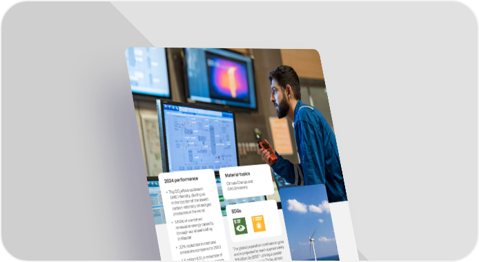 15 Source: World population projected to reach 9.8 billion in 2050, and 11.2 billion in 2100, United Nations 15 Source: World population projected to reach 9.8 billion in 2050, and 11.2 billion in 2100, United Nations The global population continues to grow and is projected to reach approximately 9.8 billion by 2050 15 , driving a parallel rise in energy demand. Today, almost 750 million 15 people globally still live in energy poverty. Addressing this energy access gap, while reducing emissions and enabling economic growth, is a central focus for delivering reliable and affordable energy. Amid increasing global energy demand and ongoing geopolitical and economic uncertainties, we believe the importance of reliable and responsible energy providers has never been greater in supporting global energy security and economic stability. The UAE has reaffirmed its leadership in international climate action by setting an ambition to establish a just, orderly and equitable transition to net zero emissions by 2050. Material topics Climate Change and GHG Emissions SDGs 2024 performance 7kg CO 2 e/boe upstream GHG intensity, placing us in the top tier of the lowest carbon-intensity oil and gas producers in the world 51GW of combined renewable energy capacity through our shareholding in Masdar 22% reduction in methane emissions compared to 2023 6.6 million tCO 2 e reduction of total scope 1 and 2 emissions, including 5 million tonnes from clean power import $220 million (AED 808 million) realized savings from emission reduction initiatives 60