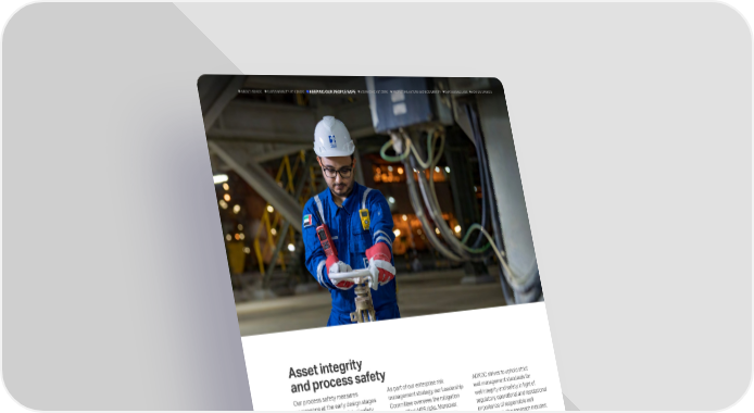 Our process safety measures commence at the early design stages to help maintain our facilities safety throughout their life cycle. Our Asset Integrity & Process Safety (AIPS) Management framework provides a consistent risk-based methodology for asset integrity. In 2024, the AIPS achieved ISO 55001 certification. We enforce safe operating procedures and maintenance programs to manage asset integrity and prevent incidents such as leaks and spills. To proactively address risks, we invest in Risk-Based Inspection (RBI), Predictive Maintenance Programs and Monitoring Systems that bolster operational safety throughout the asset lifecycle. As part of our enterprise risk management strategy, our Leadership Committee oversees the mitigation of identified AIPS risks. Moreover, we engage actively with industry associations such as the IOGP, American Petroleum Institute (API), Center for Chemical Process Safety (CCPS) and the Energy Institute (EI) to exchange best practices, challenges and insights related to process safety. To continue enhancing our AIPS practices, we conduct periodic asset integrity safety assurance reviews with independent third-party evaluations. ADNOC strives to uphold strict well management standards for well integrity and safety, in light of regulatory, operational and reputational importance of responsible well management. Our approach includes: Comprehensive management systems, guidelines and monitoring to detect and mitigate well integrity risks Leadership accountability to uphold the highest safety and operational standards Alignment with global best practices to drive compliance and long-term well performance To further strengthen safety, efficiency and risk reduction, ADNOC has integrated AI-driven automation into its well operations to help reduce human exposure to hazardous environments. Asset integrity and process safety 51 ADNOC Sustainability Report 2024 KEEPING OUR PEOPLE SAFE ADVANCING NET ZERO EMPOWERING LIVES HOW WE OPERATE SUSTAINABILITY AT ADNOC ABOUT ADNOC PROTECTING NATURE AND BIODIVERSITY 51 ADNOC Sustainability Report 2024