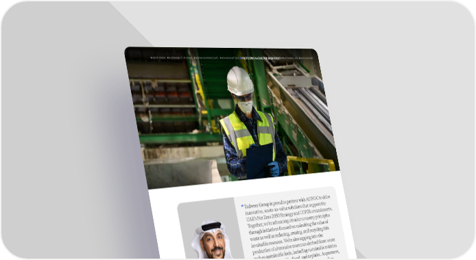 Tadweer Group is proud to partner with ADNOC to drive innovative, waste-to-value solutions that support the UAEs Net Zero 2050 Strategy and COP28 commitments. Together, were advancing circular economy principles through initiatives focused on unlocking the value of waste as well as reducing, reusing, and recycling this invaluable resource. Were also tapping into the production of alternative resources derived from waste such as sustainable fuels, including sustainable aviation fuels(SAF), renewable diesel, and naphtha. As partners, we are driving sustainable change and safeguarding the future of our planet by harnessing waste as an underutilized resource and showcasing how collaboration is a catalyst for powerful green initiatives. This partnership also opens the doors for future collaboration on technologies such as Carbon Capture and Sequestration, starting with our flagship waste to energy project in Abu Dhabi. Ali Al Dhaheri Managing Director and Chief Executive Officer, Tadweer Group PROTECTING NATURE AND BIODIVERSITY ADVANCING NET ZERO KEEPING OUR PEOPLE SAFE EMPOWERING LIVES HOW WE OPERATE SUSTAINABILITY AT ADNOC ABOUT ADNOC 87 ADNOC Sustainability Report 2024