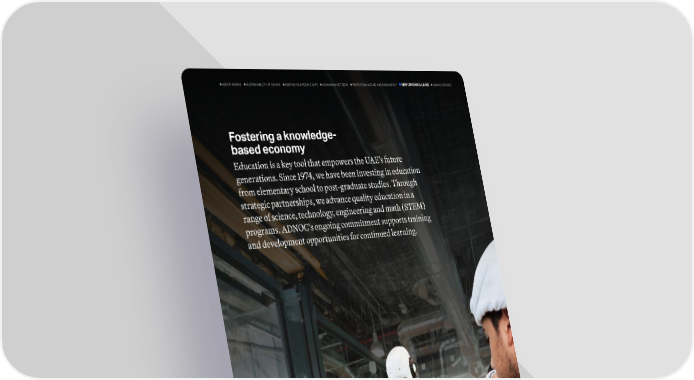 Fostering a knowledge- based economy Education is a key tool that empowers the UAEs future generations. Since 1974, we have been investing in education from elementary school to post-graduate studies. Through strategic partnerships, we advance quality education in a range of science, technology, engineering and math (STEM) programs. ADNOC's ongoing commitment supports training and development opportunities for continued learning. EMPOWERING LIVES 119 ADNOC Sustainability Report 2024 KEEPING OUR PEOPLE SAFE ADVANCING NET ZERO HOW WE OPERATE SUSTAINABILITY AT ADNOC ABOUT ADNOC PROTECTING NATURE AND BIODIVERSITY