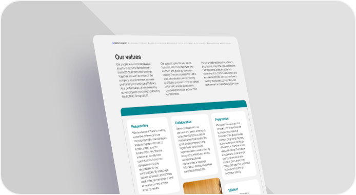 Our values Responsible We devote our efforts to making a positive difference in our community while maintaining an unwavering commitment to health, safety and the environment. We take the initiative to identify new opportunities, honor our obligations and stay responsible for our contributions. By adopting a can do approach, we motivate each other, demonstrate a spirit of excellence and achieve amazing results. Collaborative We work closely with our partners and peers, leveraging collective strengths to deliver mutually beneficial results. We strive to raise teamwork to a higher level, solve issues together and innovate faster. By recognizing efforts and results, we build trust-based relationships, encourage information sharing and deliver constructive feedback. Progressive We foster the UAEs spirit of innovation to ensure that our business remains at the forefront of the global energy industry. Daily, we go beyond business as usual, do things differently, and embrace new ways of thinking. Our culture empowers us to be change agents, where we share creative ideas, overcome challenges together and adapt to the evolving energy landscape quickly. Respectful We encourage a culture of inclusivity and mutual respect and always operate to the very highest professional and ethical standards. We look out for each other and promote open communication that supports our development as individuals and as an organization. We support constructive dialogue and active listening while respecting cultural diversity. Efficient We are a performance- driven company dedicated to maximizing the value of every barrel of oil for the benefit of our people, our community, our partners and our nation. We also strive for excellence while minimizing wastage of resources. We take an energetic approach towards carrying out our responsibilities, look for continuous improvement, see projects through to completion and inspire others to do the same. Our people are our most valuable asset and form the basis for our business objectives and strategy. Together, we work to enhance the companys performance, increase profitability and optimize efficiency. As a performance-driven company, our employees are strongly guided by the ADNOC Group values. Our values inspire the way we do business, inform our behavior and conduct and guide our decision- making. They incorporate the UAEs spirit of dedication, accountability and higher purpose. Living our values helps us to unlock possibilities, create opportunities and connect communities. We are proudly collaborative, efficient, progressive, respectful, and responsible. Our values are underpinned by our commitment to 100% health, safety and environment (HSE), with a commitment to keep employees, communities, the environment and assets safe from harm. 11 ADNOC Sustainability Report 2024