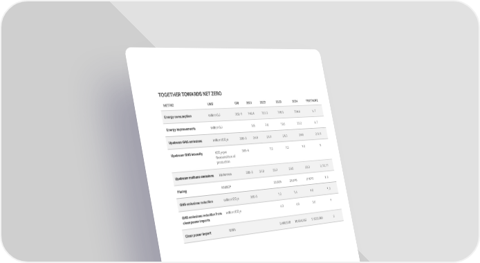 METRIC UNIT GRI 2021 2022 2023 2024 FOOTNOTE Energy consumption million GJ 302-1 748.4 721.2 719.5 734.6 1, 7 Energy improvements million GJ 5.8 7.6 18.0 23.2 1, 7 Upstream GHG emissions million tCO 2 e 305-3 24.9 24.1 24.0 24.6 2, 8, 9 Upstream GHG intensity tCO 2 e per thousand boe of production 305-4 7.2 7.2 7.0 9 Upstream methane emissions kilotonnes 305-3 37.9 35.7 28.6 22.3 2, 10, 11 Flaring MMSCF 23,925 25,976 27,010 1, 2 GHG emissions reduction million tCO 2 e 305-5 1.2 1.4 1.6 1, 2 GHG emissions reduction from clean power imports million tCO 2 e 4.2 4.8 5.0 1 Clean power import MWh 9,408,519 10,694,567 11,032,369 2 TOGETHER TOWARDS NET ZERO PROTECTING NATURE & BIODIVERSITY METRIC UNIT GRI 2021 2022 2023 2024 FOOTNOTE AIR EMISSIONS 1 Nitrogen oxides (NOx) kilotonnes 305-7 78.3 84.7 86.4 92.8 Sulfur oxides (SOx) kilotonnes 305-7 151.5 264.2 373.1 291.5 Non-methane volatile organic com- pounds (VOCs) kilotonnes 305-7 92.8 108.8 111.0 136.7 Carbon monoxide (CO) kilotonnes 305-7 32.4 34.9 37.0 39.0 Particulate matter (PM) kilotonnes 305-7 - - 1.9 2.1 145 ADNOC Sustainability Report 2024