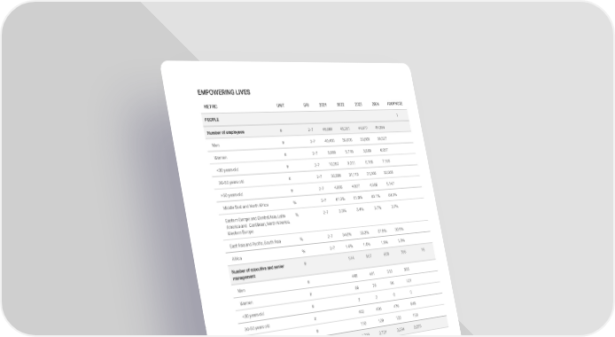 EMPOWERING LIVES METRIC UNIT GRI 2021 2022 2023 2024 FOOTNOTE PEOPLE 1 Number of employees # 2-7 46,089 45,351 44,677 44,384 Men # 2-7 40,400 39,606 38,809 38,327 Women # 2-7 5,689 5,745 5,868 6,057 <30 years old # 2-7 10,397 9,311 8,185 7,169 30-50 years old # 2-7 30,806 31,113 31,506 32,068 >50 years old # 2-7 4,886 4,927 4,986 5,147 Middle East and North Africa % 2-7 61.2% 61.8% 63.1% 64.2% Eastern Europe and Central Asia, Latin America and Caribbean, North America, Western Europe % 2-7 3.3% 3.4% 3.7% 3.7% East Asia and Pacific, South Asia % 2-7 34.0% 33.3% 31.9% 30.9% Africa % 2-7 1.4% 1.4% 1.3% 1.3% Number of executive and senior management # 514 567 609 706 18 Men # 448 491 513 585 Women # 66 76 96 121 <30 years old # 2 2 0 0 30-50 years old # 402 436 476 548 >50 years old # 110 129 133 158 Number of new employee hires # 401-1 1,723 2,721 2,294 2,255 Men # 401-1 1,453 2,332 1,936 1,851 Women # 401-1 270 389 358 404 <30 years old # 401-1 597 1188 895 1020 30-50 years old # 401-1 998 1418 1248 1141 >50 years old # 401-1 128 115 151 94 Middle East and North Africa % 401-1 46.9% 51.9% 59.5% 60% Eastern Europe and Central Asia, Latin America and Caribbean, North America, Western Europe % 401-1 14.0% 8.7% 12.0% 10% East Asia and Pacific, South Asia % 401-1 35.1% 37.8% 27.4% 29% Africa % 401-1 2.6% 1.6% 1.0% 1.0% 149 ADNOC Sustainability Report 2024