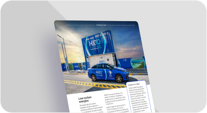 Low-carbon energies We expect that low-carbon hydrogen will play a vital role in unlocking additional decarbonization opportunities for the hard-to-abate industrial and transportation sectors. To this end, we are progressing our efforts to build low-carbon hydrogen and low-carbon ammonia supply chains, leveraging the UAEs substantial gas reserves, CCUS capabilities and global partnerships. In 2024, ADNOC successfully delivered the worlds first certified bulk commercial shipment of low- carbon ammonia to Mitsui for use in clean-power generation in Japan. The low-carbon certification process, from production to delivery, has been conducted by TV SD. Enabled by CCS, the captured CO was permanently stored in the worlds first fully sequestered CO injection well in a carbonate saline aquifer. This landmark shipment, produced by Fertiglobe, builds on previous demonstration cargos delivered by ADNOC to customers in Asia and Germany. ADNOC has also embarked on the design of a facility in Abu Dhabi to produce up to 0.4 mtpa of low-carbon hydrogen per year by capturing up to 3 million tCO. ADNOC, together with its partners, TAZIZ, Fertiglobe, G.S. Energy Corporation and Mitsui are developing a 1mtpa lower-carbon ammonia facility at the TAZIZ Industrial Chemicals Zone. In 2024, TAZIZ awarded the construction contract for this facility with operations expected in 2027. The facility will strengthen Abu Dhabis position as a hub for low-carbon fuels to meet growing global demand for clean hydrogen carriers. In another 2024 milestone, ADNOC has signed an agreement to acquire a 35% equity stake in ExxonMobils proposed low-carbon hydrogen and ammonia facility in Baytown, Texas. The investment is part of ADNOCs international growth strategy and commitment to lower-carbon solutions. The facility aims to produce up to 0.9mtpa of low-carbon hydrogen and over 1mtpa of low-carbon ammonia, with approximately 98% of CO captured through advanced CCUS technologies. Once operational, it is expected to be the worlds largest facility of its kind. Hydrogen for mobility In 2024, ADNOC Distribution launched the second phase of H2GO, the regions first high- speed green hydrogen refueling station, in partnership with Abu Dhabi Mobility. This phase powers a fleet of hydrogen- fueled buses that will undergo a 12-month trial to evaluate the viability of hydrogen as a clean energy solution for Abu Dhabis public transport system. The station produces green hydrogen on-site using an electrolyser powered by clean- grid electricity, aligning with the UAEs National Hydrogen Strategy and supporting the decarbonization of the transport sector. Located in Masdar City, the pilot project is enabled through collaboration with local and global partners, marking a key step toward advancing green hydrogen infrastructure and accelerating the deployment of low-emission mobility solutions in the region. 71 ADNOC Sustainability Report 2024 KEEPING OUR PEOPLE SAFE EMPOWERING LIVES HOW WE OPERATE SUSTAINABILITY AT ADNOC ABOUT ADNOC PROTECTING NATURE AND BIODIVERSITY ADVANCING NET ZERO